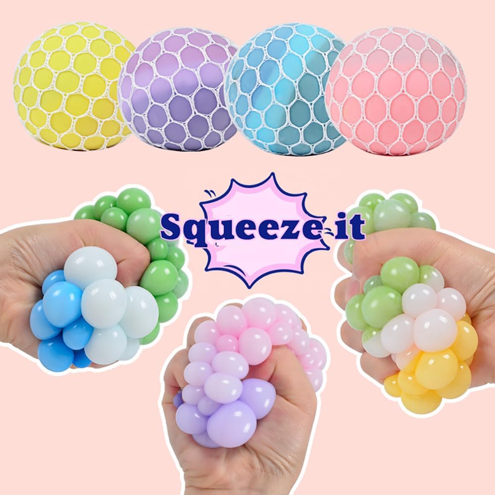 for age 3 and over. Encased in a durable mesh, it features a changing colour effect with each squeeze,